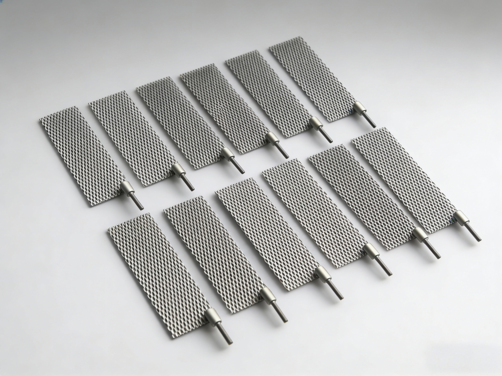 Platinized Titanium Anodes consist of an industrial pure titanium substrate (GR1/GR2) covered with a thin layer of pure platinum (0.5μm – 5μm) using PVD (Physical Vapor Deposition), electroplating, or thermal decomposition processes.
