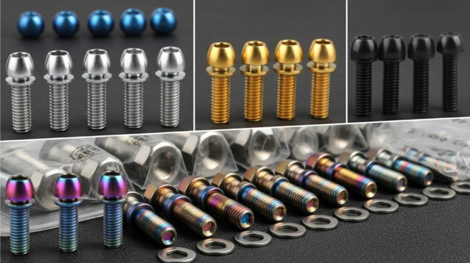 1. Braking & Drivetrain (Performance): Start with rotor bolts, caliper mount bolts, and sprocket nuts. Reducing weight on rotating parts reduces the gyroscopic effect, improving handling agility.